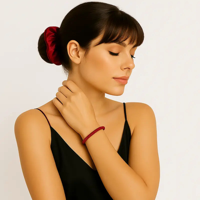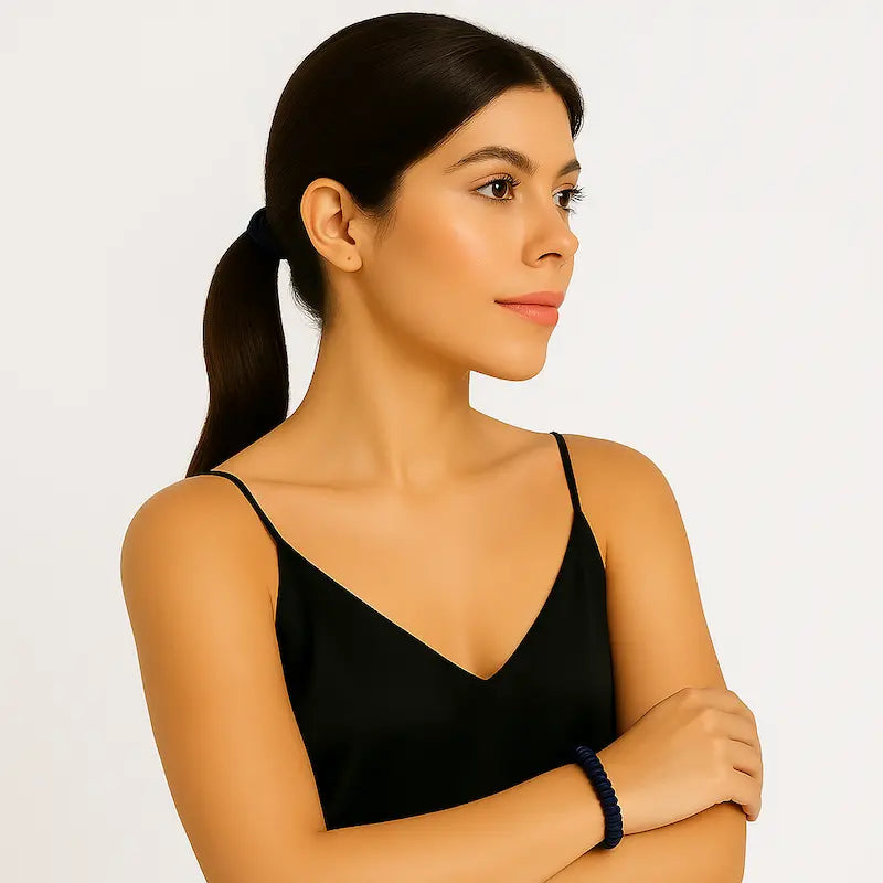 En évitant les tractions agressives, les chouchous en soie aident à prévenir les pointes fourchues, assurant une protection continue pour des cheveux lisses et sains.