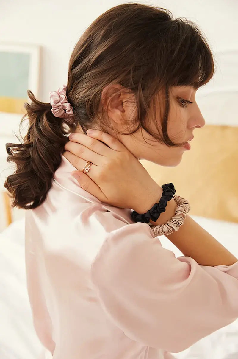 Attachez vos cheveux sans les arracher. Nos chouchous 100% soie de luxe sont parfaits pour garder vos cheveux lisses, brillants et moins fragiles.