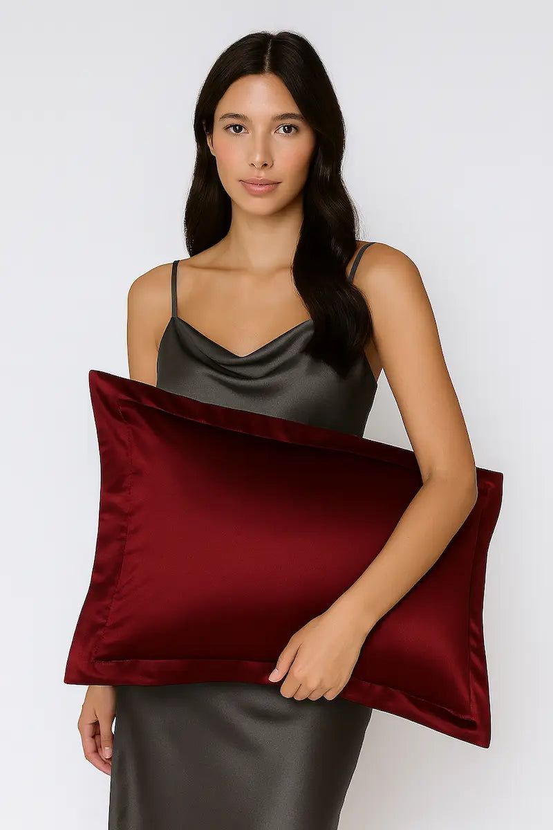 Taie d'oreiller en soie avec bord à volant 19 momme